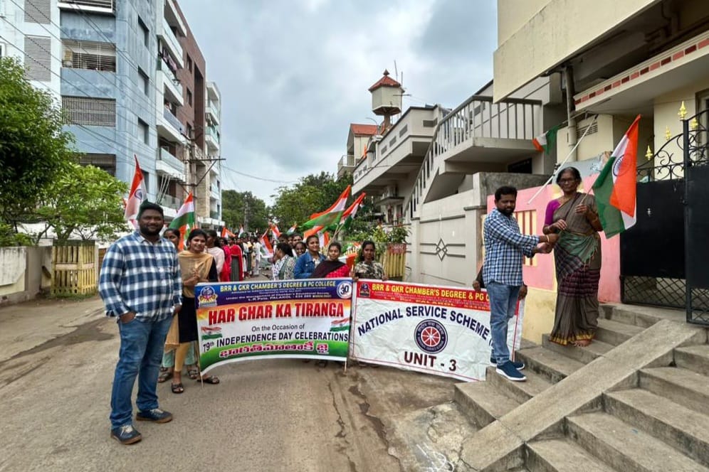 Har Ghar Ka Tiranga Programme conducted by our college students & staff. NSS Volunteers & Degree Students contributed and distributed 100 National Flags to residents of LR Peta area.